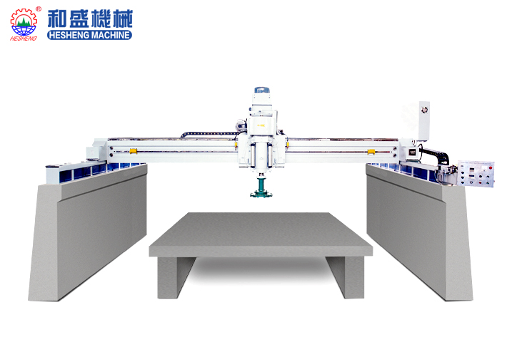 DTMJ-3200 橋式單頭磨機【 單頭磨機 ; 單頭拋光機】 該機采用橋式整體結構,工作時磨頭安裝在在中間滑體一側,采用氣壓升降,中間滑體在主梁作左右運動,主梁在導軌梁上做前后運動,工作臺板不做任何運動,使機械在工作時更加平靜,采用氣動加壓,減少了工人的勞動強度。是拋磨、大板、墓碑等大規格石...